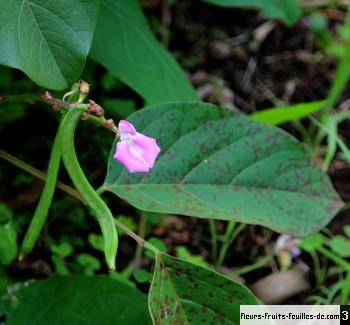 * Canavalia gladiata avec un étendard d’environ 3,5 cm de long, blanc et fruit de 20 à 40 cm de long contenant des graines rouge ou brun rouge, rarement blanches.