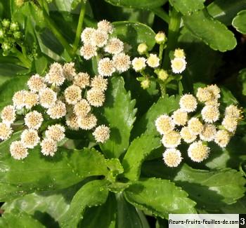 Description: La saliette est un arbrisseau atteignant 1 m de hauteur (photo 4), à tiges striées. Les feuilles sont simples, alternes. Le limbe oblancéolé ou spatulé, est aigu à arrondi au sommet (photos 3 et 5). Les inflorescences ramifiées sont terminales et parfois insérées sous la partie feuillée des rameaux (photos 1, 3 et 5). Les fleurs femelles et mâles de couleur blanche sont réunis en capitules (photo 2). Les fruits sont des akènes.